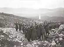 On 13 December, Porto Palermo, a coastal village south of Himara came under the control of the Greek forces.[2] Two days later, the Greek 3rd Infantry Division continued the offensive toward Himara. However, the advance was slowed due to heavy enemy counter-action, supported by air force raids, as well as extremely harsh weather conditions. On 19 December, the Greek forces after a hard fight captured the Giami height.[3] Meanwhile, at the dawn of same day, the 3/40 Evzone Regiment (Colonel Thrasyvoulos Tsakalotos) launched, without artillery preparation, a surprise attack against the Italian troops at Mount Mali i Xhorët (or Mount Pilur), a strategic spot east of Himara. The Evzones of the regiment, after being informed about the topography of the region by locals, performed a charge with fixed bayonets from various positions against the Italian garrison.[4]