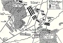 Knowing Villars had been instructed to fight for Mons, Marlborough and his deputy Prince Eugene of Savoy were confident of winning a victory that would effectively end the war. At the same time, while conscious of the implications of defeat, Villars informed Louis XIV he must fight, or his army would dissolve.[2] The Allies delayed their attack pending the arrival of 1,900 men from Tournai under Henry Withers, a decision criticised then and later, one analyst arguing "the battle should have taken place on 10 September, or not at all".[9] This gave Villars an extra day to construct defensive positions, including earthworks covering the open ground in the centre, and additional entrenchments extending into the woods on either side.[2]