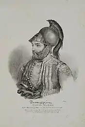 Ibrahim, in person, advanced towards the Greek position leading a force of over 6,000 soldiers.[1] (Phillips calls the Egyptian force 'innumerable').[5] Papaflessas provided an eloquent speech that enhanced the morale of the remaining Greeks that decided to stay and fight.[6] As the Egyptians in Ibrahim's army attacked, the Greeks held their positions staunchly but were eventually overwhelmed. Ultimately, a large part of the remaining Greeks, of 800 or 1,000 men, including Papaflessas and four hundred Egyptians perished in the aftermath of the battle.[7] The head and body of Papaflessas were recovered and placed upright on a post; not in dishonour, but as a mark of respect for a valiant foe. It is said that Ibrahim even kissed his head and said "If all Greeks were like him, I would not take charge of this campaign".[8]