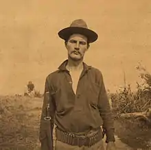 Sources generally agree that the first shots were fired by Private William Walter Grayson (April 9, 1876, England - March 20, 1941, San Francisco, United States), an Englishman who had migrated to Nebraska with his parents c. 1890. Having worked as a hostler, he had enlisted as a volunteer soldier in Lincoln, Nebraska, in May 1898, a month after the Spanish–American War erupted, and had deployed with his unit to the Philippines in June 1898.[5] Grayson's unit, the First Nebraska Volunteer Infantry under Colonel John M. Stotsenburg, had been encamped in Santa Mesa, Manila, since December 5, 1898.[6] During their encampment, there had been incidents on and around the San Juan Bridge, located just to the east of their encampment area.[7]