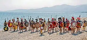 Athenians on the beach of Marathon. Modern reenactment of the battle (2011)
