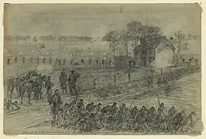 After the battle, Hays was accused of being drunk during the battle and of acting irrationally. However, many officers, including several in his division, attested that Hays was sober throughout the engagement. All of the accusations about Hays being drunk at Morton's Ford came from the 14th Connecticut, which suffered nearly half of the Union casualties in the battle and may have felt resentment against Hays because of it.[8]