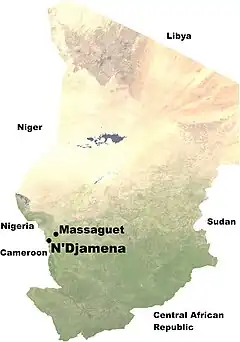 Locations of N'Djamena and Massaguet in Chad