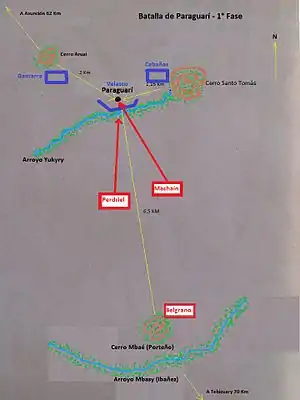 Belgrano entered into Paraguayan territory, overcoming slight resistance in the battle of Campichuelo. Belgrano crossed the Tebicuary River on 11 January, finding abandoned villages since Velasco evacuated them with his retreat.[2]