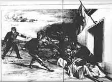 Assassination of Eulogio Robles by congressional troops after the battle (vintage engraving).