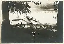 Some sources later accused White Dog of deliberately prolonging his exchange with Marsh to allow the other Dakota to ford the river upstream, take cover in the thicket, and take control of the ferry house.[8] Magner reported that Marsh had instructed him to look upriver for movements, when he saw in the river and in the weeds to the north that "the place was red with their heads." Marsh then ordered his men to retreat at roughly 1:30 PM.[6][9]