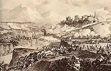 On 5 September, Vaubois crossed the bridge of the river Avisio, attacked Davidovich at Lavis and drove him farther north. Satisfied that Davidovich was no longer a threat, Bonaparte sent Augereau's division to Levico Terme on the trail of Würmser. Soon, Masséna's troops followed in Augereau's wake.[16] This set the stage for the subsequent skirmish at Primolano on 7 September and the Battle of Bassano on 8 September.[17]
