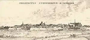 The Battle of Steenbergen, also known as the Capture of Steenbergen of 1583, took place on 17 June 1583 at Steenbergen, Duchy of Brabant, Spanish Netherlands (present-day North Brabant, the Netherlands). This was an important victory for the Spanish Army of Flanders led by Don Alexander Farnese, Prince of Parma (Spanish: Alejandro Farnesio), Governor-General of the Spanish Netherlands, over the French, English, and Dutch forces led by the French Marshal Armand de Gontaut, Baron de Biron, and the English commander Sir John Norreys, during the Eighty Years' War, the Anglo-Spanish War (1585–1604), and in the context of the French Wars of Religion.[1][2] The victory of the Spaniards ended the Treaty of Plessis-les-Tours, and Francis, Duke of Anjou (French: François de France), left the Netherlands in late June.[5][6]