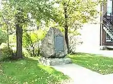There are three plaques in the city of Trois-Rivières commemorating aspects of the battle. A plaque honouring the British participants was placed at the National Historic Site by the Historic Sites and Monuments Board of Canada. A plaque honouring the American dead was placed in the Parc Champlain by the Daughters of the American Revolution in August 1985.[29] The third plaque honours Antoine Gauthier for his role in misleading the American troops.
