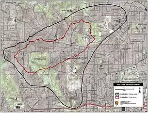 The Battle of Utoy Creek was fought August 4–7, 1864, during the Atlanta Campaign of the American Civil War. Maj. Gen. William T. Sherman's Union armies had partially encircled the city of Atlanta, Georgia, which was being held by Confederate forces under the command of General John Bell Hood. Sherman had at this point adopted a strategy of attacking the railroad lines into Atlanta, hoping to cut off his enemies' supplies. This was the third direct attack on Confederate positions during the campaign and the effect of success would have ended the siege and won Atlanta on 6 August 1864.