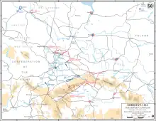 By 2 p.m. the Württembergers had been dislodged from Bleddin, and Beaumont's cavalry swept aside by the Prussian Hussars. Wartenburg was now threatened from the east by Steinmetz and from the south by Mecklenburg.[5] The decisive blow came from Horn's brigade. Passing through an orchard, and crossing a stream and two dikes, they fell upon Fontanelli's men, who had been called forward to reinforce Morand.[8]