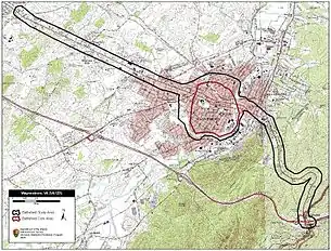 Map of Waynesboro Battlefield core and study areas by the American Battlefield Protection Program.