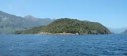 ![]() Bauza Island from west, Secretary Island to the left in the background | |