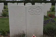 The cemetery contains the Cross of Sacrifice or War Cross, designed by Sir Reginald Blomfield for the Commonwealth War Graves Commission (CWGC).
