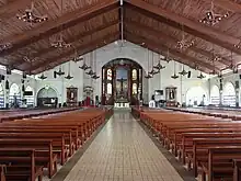 The mission in present-day Bayombong had its roots in the mid-18th century when it was formally accepted by the Dominicans as mission center in a region previously referred to as Paniqui. Soon after founding the mission, the erection of the church structure took place in 1780 under the supervision of Father Juan Crespo, OP.[2][3] According to records, the church, and other nearby structures, was gutted by fire in 1892. Father Cerefino Martinez, O.P. initiated the reconstruction of the church. It was completed three years after, in 1895, with the installation of galvanized iron roofing, new altarpieces and a new pulpit.[3]