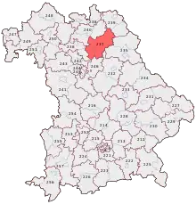Bayreuth is an electoral constituency (German: Wahlkreis) represented in the Bundestag. It elects one member via first-past-the-post voting. Under the current constituency numbering system, it is designated as constituency 237. It is located in northern Bavaria, comprising the city of Bayreuth, the Landkreis Bayreuth district, and the eastern part of the Forchheim district.[1]