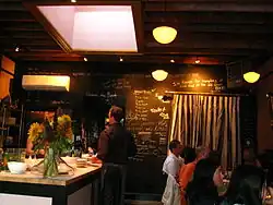 The restaurant served French[9][10] and Pacific Northwest cuisine[11] in a 600-square-foot[12] dining room with two tables for communal dining.[13][14] The restaurant served prix fixe dinners[15][16] as well as brunch.[17]