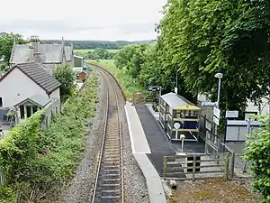 There is a small car park at the station, in which there are cycle racks and lockers. On the platform, there is a modern waiting shelter, in which there is a payphone.[14] As there are no facilities to purchase tickets, passengers must buy one in advance, or from the guard on the train.