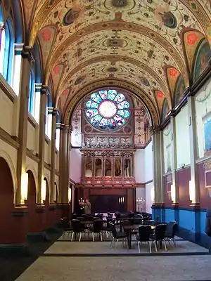 Immediately thereafter the building was borrowed for one academic year by the Loreto Sisters on account of delays to their new teacher training college. By the early 1970s, the building was owned by the British computer company ICL, which used it for many years as a training centre. In 2003 it was acquired by Hayley Conference Centres, which carried out much new building on the site with very extensive extensions and alterations, including the closure of the sweeping front drive. In 2008 Hayley restored the chapel as a function space. The property is now owned and operated by Principal Hotel Company under the brand name De Vere Beaumont Estate. A memorial to the dead of the South African War survives in the former Lower Line refectory.