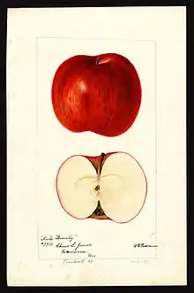 'Beauty of Kent' is a cultivar of apples; the fruit are used for cooking.[1][2] It is known by various names including 'Countess of Warwick', 'Gadd's Seedling', and 'Wooling's Favourite'.[1] It received an Award of Merit from the Royal Horticultural Society in 1901[1] but was judged of no value for the apple-growing areas of New York State in 1913.[3] Vitamin C 12mg/100g.[4]
