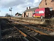 A planning application for the proposed new station at Bedlington was submitted to Northumberland County Council on 18 March 2021.[25] The submitted planning documents indicate that the new station will be constructed on the same site as the previous one,[26] with part of the extant original platform to be rebuilt for incorporation into a new[27][28] 100 m (110 yd)[26] down (northbound) platform and the surviving station buildings retained.[29] An entirely new 100 m (110 yd) up (southbound) platform will be added on the opposite (west) side of the through lines,[27][28] between Bedlington South Level Crossing and the junction with the line to Morpeth.[26] Passengers will be able to transfer between the two platforms using the existing level crossing.[26] The station will be served by two car parks: one with 36 spaces will be located immediately to the northeast of the up platform, while the other will have 31 spaces and will be located on the opposite (north) side of Barrington Road.[26]