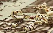The company produces chocolates on site with free viewing by visitors. In addition to candy bars, cookies, chocolate-covered popcorn and caramel, the company creates chocolate-covered potato crisps and nut clusters under the moniker “Oklahoma cow patties.” Retailers such as Neiman Marcus and Bloomingdales sell Bedré chocolates in stores across the United States. Bedré creates chocolate guitars for guests at Hard Rock Hotels, and Dylan’s Candy sells it under their own private label. In the past, the convenience store 7-11 distributed the chocolate under the name Watts Farm, and Braum's, a Midwestern dairy company, also sold the chocolate under its own brand name.[5][6]