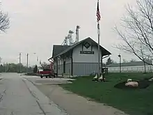 With efficient rail service running through the new village, further development began to build up near the railroad. By the end of the century, there was a thriving business section in the heart of the village. The depot became the center of activity. It was located on Reed Street, between Hodges and Penfield and was built in 1881 by the Chicago, Danville & Vincennes (CD&V) RR. The Chicago & Eastern Illinois (C&EI) RR took it over and operated it until the 1960s when it closed. The depot was sold and moved to Monee, Illinois to Thompson's Winery where it was used as a gift shop until the 1980s. It was returned to its original site in Beecher in 2000, and renovated to its present state. It is a standard wooden depot and one of the last of its kind left on the former C&EI route. It is the home of the local historical society and is open on Saturdays from 10 a.m. until noon.[3]