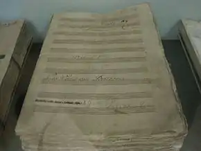 The hand-copied parts used for the premiere of Beethoven's Fifth Symphony. They include corrections hand-entered by the composer, and are on display in the Lobkowitz family museum in Prague.