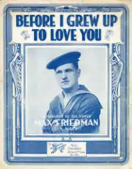"Before I Grew Up To Love You" is a World War I era song released in 1917. Max Friedman wrote the lyrics and music. The song was published by Shapiro, Bernstein & Co. of New York City. There are two versions of the cover. One features a framed photo of Friedman in a sailor's uniform.[1] The second version has a drawing of a man and woman with an orange-colored moon behind them. Below them is a branch of leaves. The song was written for voice and piano.[2]