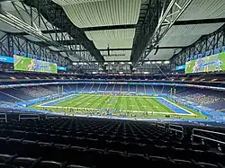 Empty Ford Field in Detroit, USA, with only cardboard fans attending an NFL game amid the COVID-19 pandemic