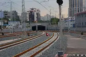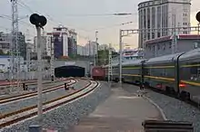 The Beijing underground cross-city railway is a short railway connection in Beijing. The speed limit is 120 km/h.[1] It connects the important transportation hubs Beijing railway station and Beijing West railway station via a tunnel. It also connects lines from southern and western areas with lines from northeast China.[3] The railway has a length span of 9.156 km (5.689 mi), and has been officially operational since March 20, 2015.[4]