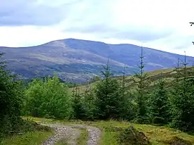 Beinn Bhàn reaches a height of 796 metres (2612 feet) and qualifies as a Corbett and a Marilyn. The hill stands in Glen Loy, a minor side valley of the Great Glen and hill walkers will sometimes climb Beinn Bhàn along with another Glen Loy Corbett, Meall a' Phubuill to give a full days walking . The hill's name translates from the Scottish Gaelic language as "White Hill", there are no natural features which could give this name and local knowledge says that the hill is so named because snow lies on Beinn Bhàn earlier than any other hill in the district and it is this well-defined whiteness which led to the naming of the hill.[2] Much of the area around Beinn Bhàn was used for the training of British Commandos and United States Army Rangers during World War II using the training depot at Achnacarry Castle on the NE foothills.[3][4]