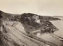 The station opened as Lian on 2 January 1879, the same day as the rest of the Østfold Line.[1] It originally received a station building designed by Peter Andreas Blix.[2] Later that year a commuter rail service started to Bekkelaget, and was extended to Ljan in 1880.[3] This made Bekkelaget an attractive place for people to build houses, as it was then possible to commute to the city. Residential development therefore started after the commuter train services were introduced.[4] The area received single dwellings, with construction starting near the station and gradually spreading upwards toward Bekkelagshøgda.[5]