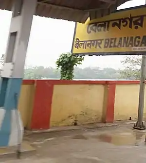Belanagar railway station is a Kolkata Suburban Railway station on the Howrah–Bardhaman chord line operated by Eastern Railway zone of Indian Railways. It is situated at Bally Jagachha Block, Belanagar in Howrah district in the Indian state of West Bengal.[1] Number of EMU trains stop at Belanagar railway station.[2] This railway station is named after Bela Mitra, a freedom fighter and social activist. This was the first Railway station in India named after any Indian woman.[3][4]