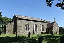 The Grade II listed parish church of Belchford[3] is dedicated to St Peter and St Paul The original church was built before 1153,[4] but was rebuilt in 1781, with later additions in 1859. The font is 15th-century; the altar and reredos 19th-century.[3]