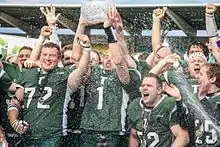 The Trojans opposition in the Shamrock Bowl would be Trinity College Dublin the only team to have beaten them in the previous three years. The Trojans were classed as underdogs for the first time since 2012 due to Trinity's victory over the champions earlier in the season. Again it was a day for the Trojan defence to prove themselves to be the most dominant unit in Irish American Football as both offences failed to cope with the intense rain that forced a cessation of the game for thirty minutes during the first half. In keeping with the defensive battle that was being waged it was Trojan linebacker Connor Whitla who scored the only touchdown of the game picking off Dan Finnamore and running it in from 20 yards. The Trojans had completed the "Threepeat" and could now take their place at the top table of Irish American Football.