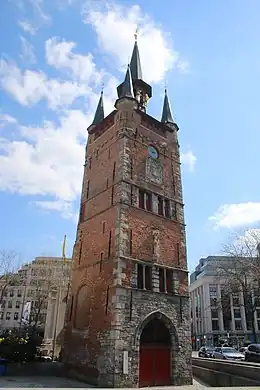 The Belfry of Kortrijk (Dutch: Belfort van Kortrijk) is a medieval bell tower in the historical centre of Kortrijk, Belgium. One of the city's most prominent symbols, the belfry formerly housed a treasury and the municipal archives, and served as an observation post for spotting fires and other danger. A narrow, steep staircase, accessible by the public without any entry fee, leads to the top of the building, which nowadays leans about a bit to the west. In 1999, the belfry was inscribed on the UNESCO World Heritage List as part of the Belfries of Belgium and France site, in recognition of the civil, not religious, importance and architecture of the belfries in the region.[1]