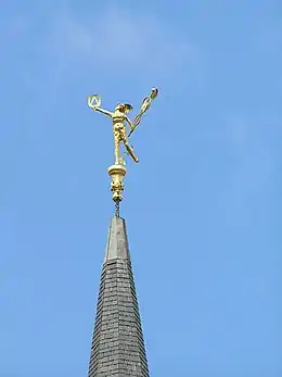 During the Second World War, the Belfry was only partly damaged, but it wasn’t until the 1950s that the bell tower was properly restored to its original glory. On the very top of the spire, one can see a golden statue of the Roman god Mercerius, the god of trade, which was added to the tower in 1712.