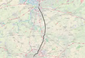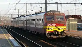 A recent addition is line 25N, which branches off south of Mechelen to follow the E19 motorway into the Diabolo to Brussels National Airport. As of 2019, works are underway to extend this line 25N through the Mechelen station, adding two platforms, to rejoin the "regular" line 25 North of Nekkerspoel station.[2] L25N has 3 kV DC electrification, and allows speeds up to 160 km/h (100 mph).