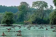Mammals in the wetland include otter, wild cat, pine marten and beech marten,[1] but also wild hog, coypu, jackal,[2] badger and hare.[12] There are 62 mammalian species in Beljarica.[8] By August 2021, naturalists began warning on the possible overpopulation of coypus, non-native invasive species which were probably let into the wild when production on fur farms became too costly. They are especially a threat to the population of beavers, which were extinct in Serbia in the early 1900s, but were successfully reintroduced since 2004. Calls were made for the plan on controlling the coypu population.[13] By February 2022, coypus spread into the Sava.[14]