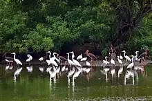 The wetland is home to 216 plant species, 139 species of insects and 98 species of fish.[8] Beljarica is a major fish spawning and bird nesting area. Of 136 bird species which live in Beljarica, 108 are protected.[9] There are several nesting couples of the largest European eagle, white-tailed eagle,[1] and the black stork also lives in the area.[2] After coming into the public spot, survey of Beljarica increased, so by 2020, a 166 species of birds were reported, of which 137 are protected.[5] Other birds include ferruginous duck, pygmy cormorant, corn crake and Eurasian bittern.[3]