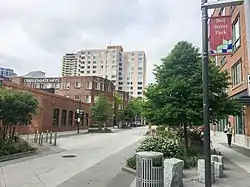 Bell Street Park is a 1.33-acre (0.54 ha) park, created in 2014 in Seattle, Washington's Belltown neighborhood.[2] Situated in a neighborhood described as a former "hot-spot for low-level crime, drug-dealing and civil disorder",[3] and intended in part to reduce crime rates on the street,[4] the property was transferred from the city's transportation department to Parks and Recreation,[5] and it was redeveloped as a woonerf or mixed-use pedestrian/vehicular traffic area without curbs.[6]