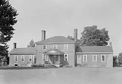 A structure was built on the site before 1759 by William Bertand, who died that year and whose father John Betrand had emigrated to Virginia as a Huguenot refugee and patented the land in 1692. The will provided the two storey house would be inherited by his grandson Thomas Bertrand Griffin. Members of the Griffin family then sold it circa 1786 to Rawleigh William Downman, who remodeled the parlor around 1790 and probably added two one-story dependencies on either side of the main house. Downman's descendants continued to hold the property for more than a century. In 1918 it was bought by the Somers family, whose members began modernization. Part of this (completed by 1922) involved removing the original interior woodwork, whose quality was recognized and installed in the Winterthur Museum. In 1940, the property was acquired by owners who sought to restore its historical authenticity and commissioned Thomas Waterman to oversee the restoration, including of modern replica of the original paneling, which was installed in 1941.[3]