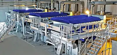 Paper technology consists of planning and realizing plants and modernization projects for the pulp and paper industry. From the approach flow via the wire section, press part and drying section up to the pope reel and complete paper machines.[5]