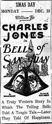Bells of San Juan is a 1922 American silent Western film directed by Scott Dunlap and starring Buck Jones.[2] It was based on the Jackson Gregory novel The Bells of San Juan.[3] It was the first of five films where Claude Payton was cast alongside Jones.[4]