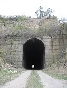 The Belmont Tunnel is a 698-foot (213 m) long railway tunnel near the ghost town of Belmont about halfway between Crawford and Marsland, Nebraska, in western Dawes County.[1][2] It was built by the Chicago, Burlington and Quincy Railroad in 1888-1889 and was used regularly until it was bypassed in 1982. It is the only railway tunnel ever constructed in Nebraska.[3]
