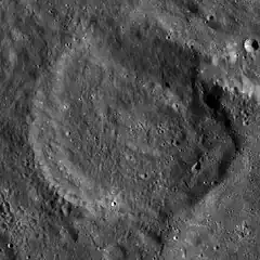 Belopolʹskiy is a lunar impact crater that is located on the far side of the Moon. It lies to the west of the crater Houzeau, and northeast of Strömgren. Just to the northwest of Belopolʹskiy is the crater Ioffe.