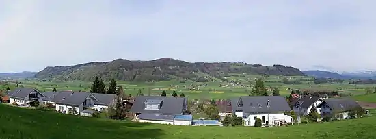 It is located on a hill that shares the town's name, between the Aare river and the Gürbetal. It includes a number of hamlets (including Linden, Oberhäusern, Hofstetten, z.T. Heitern) and scattered farmhouses. It belongs to the parish of Belp.