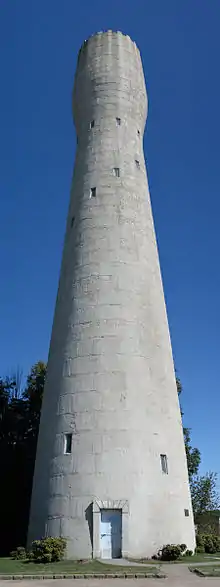 It is an early example of water storage facilities using reinforced concrete construction, a material that would eventually become popular in the United States.[3] The tank, located at the top of the tower, holds 165,000 gallons of water that flows through a 10-inch pipe located in the center of the tower.[6]