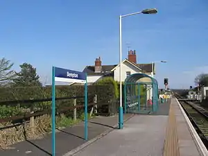 The station is unmanned, with a basic shelter on the single platform and a ticket machine located at the entrance to the platform. The station house is now in private ownership. Step-free access is available to the platform from the adjacent road.[1]